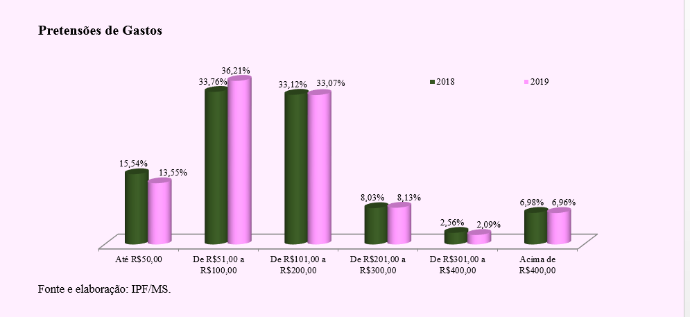 Comemorações – Um contingente de 41,15% da população participarão de comemorações, enquanto que em 2018, esse percentual era de 57,28%. Os gastos também caíram de R$130,26 para R$106,82.