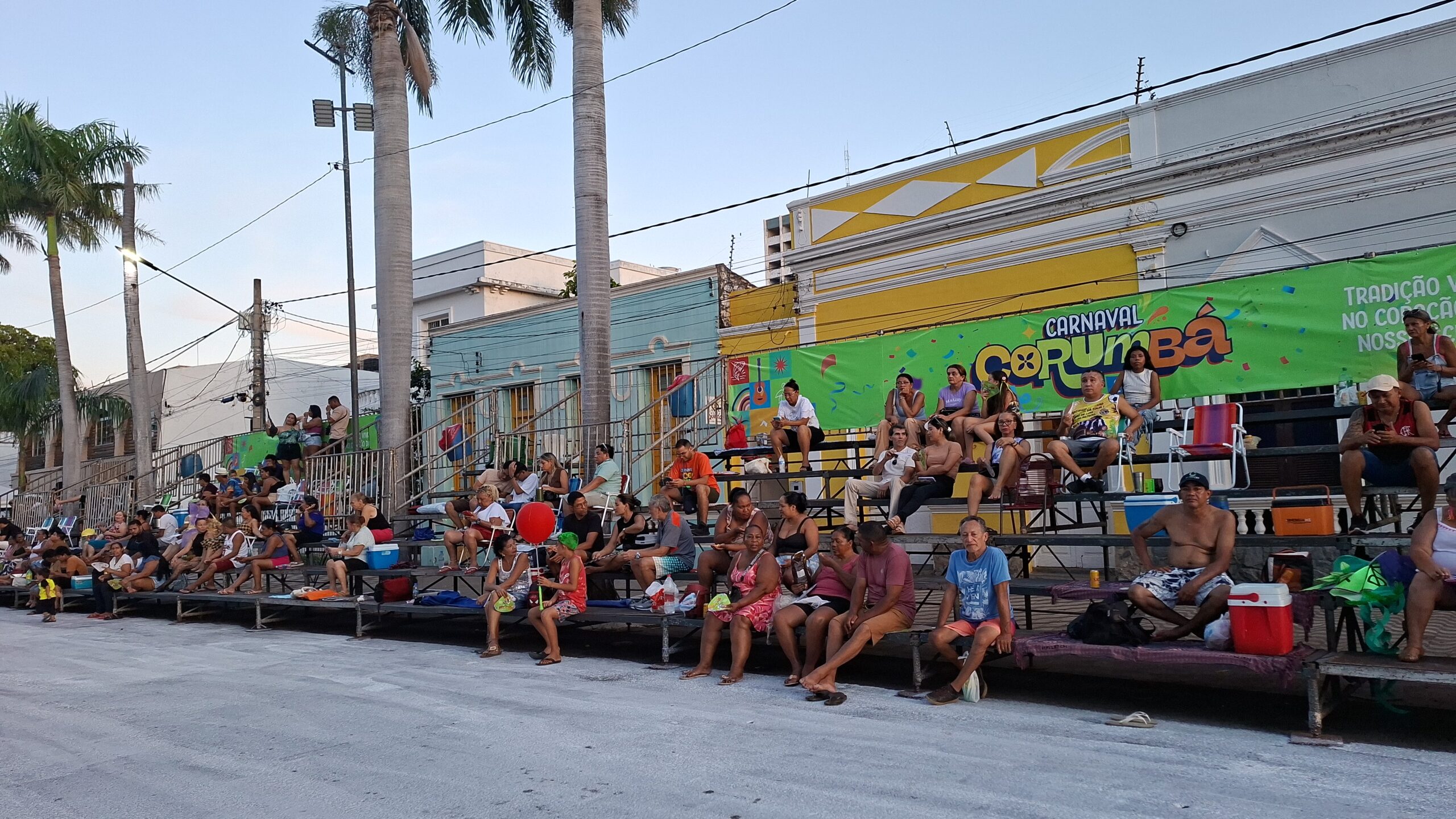 Apesar de a concentração da primeira agremiação estar marcada para as 19h, o público se antecipou e começou a ocupar os espaços desde o fim da tarde. Famílias, grupos de amigos e foliões vestidos com adereços carnavalescos aguardam o início do espetáculo que promete movimentar a noite na Cidade Branca.