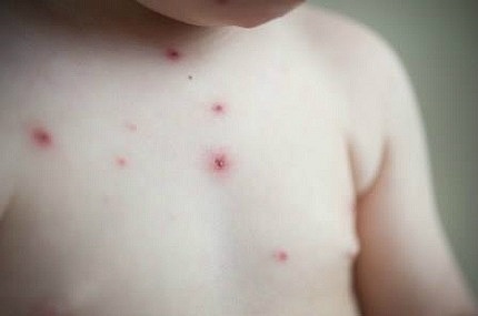 manchas vermelhas e bolhas no corpo;