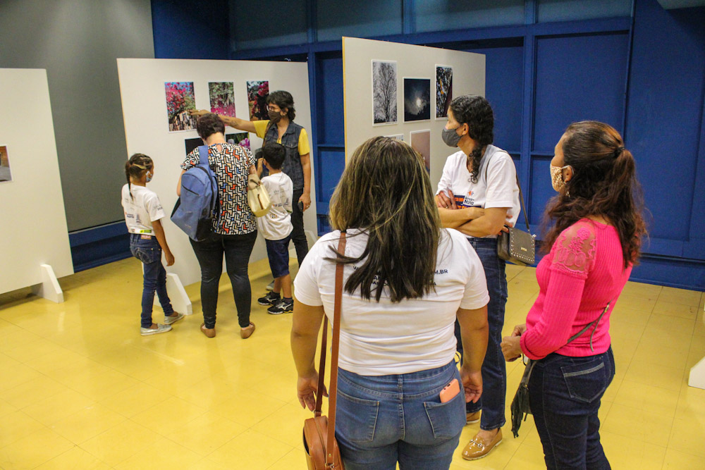 Um dos artistas expostos, Diogo Natan, de 8 anos conta que eternizou a árvore da casa da avó, “é uma árvore bonita, que dá flores e eu tirei a foto dela um dia nates de cortarem a metade pra construir um muro, então agora posso ver ela pra sempre na minha foto”.