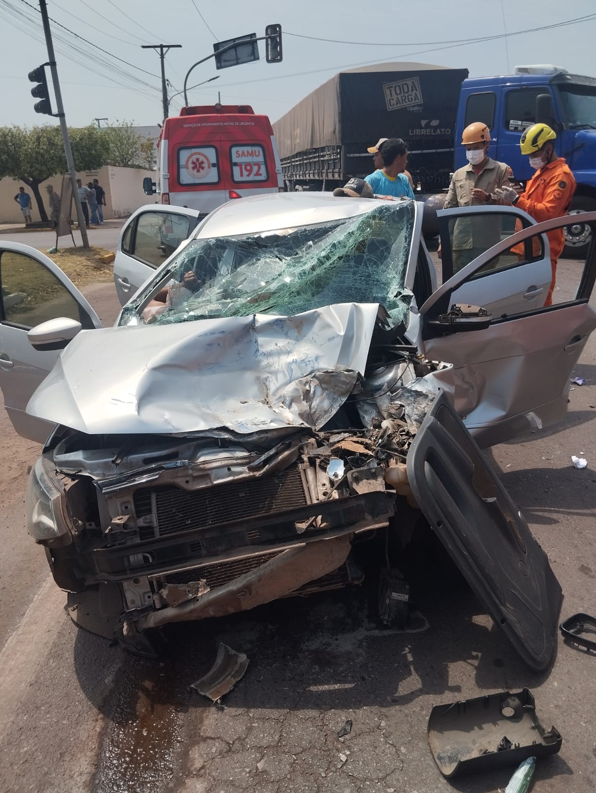 No local, houve uma colisão envolvendo uma carreta e um carro de passeio. A condutora do veículo, de 46 anos, foi encontrada dentro do automóvel com fratura no braço esquerdo e um corte profundo na perna esquerda, na altura do joelho.