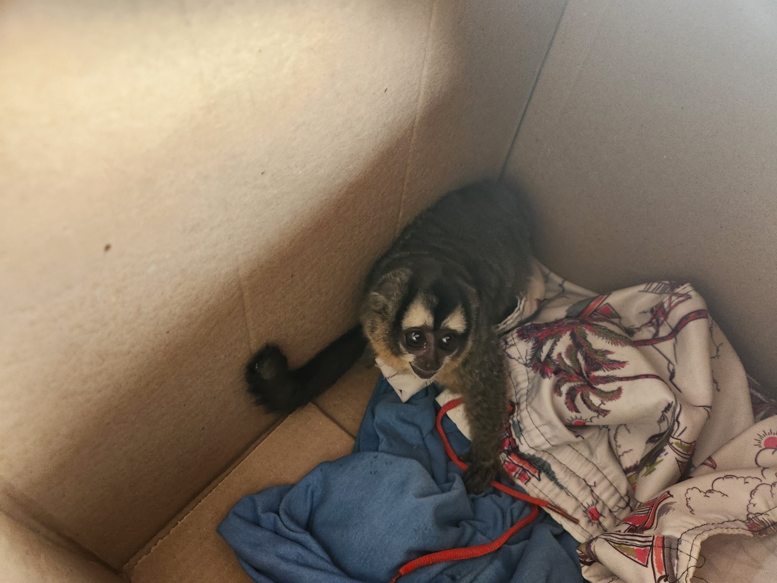 Um macaco-da-noite foi resgatado no último sábado (15) depois de levar um choque elétrico ao subir em um poste de energia no bairro Cravo Vermelho, em Corumbá. O animal foi levado por um morador até o 3º Grupamento de Bombeiros Militar, já debilitado e com sinais de queimaduras.