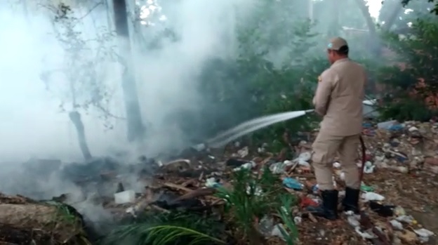 Um incêndio por volta das 6h desta quinta-feira (7) mobilizou os plantonistas do Corpo de Bombeiros até a rua São Pedro no bairro Maria Leite. Foram gastos 500 litros de água para combater e extinguir as chamas. O local era um terreno baldio onde havia muito lixo doméstico acumulado.