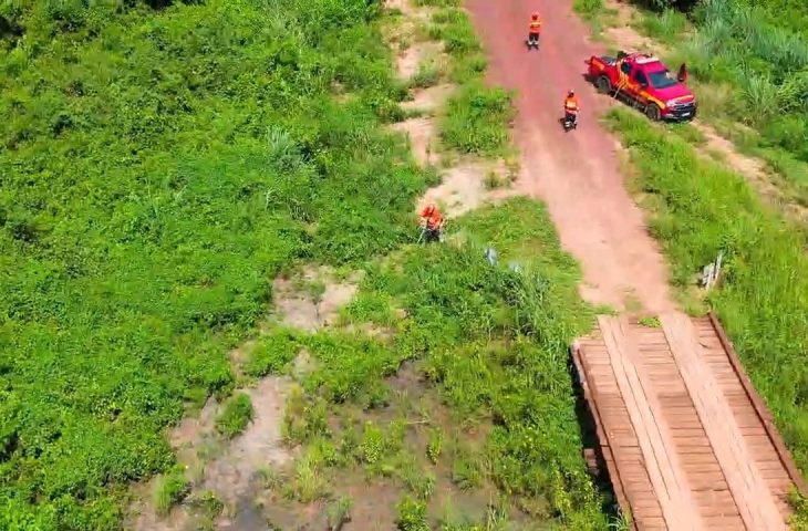 Apesar de encontrar barreiras em relação ao deslocamento das equipes, os bombeiros conseguem chegar nas áreas mais remotas para atuar no combate aos incêndios florestais.