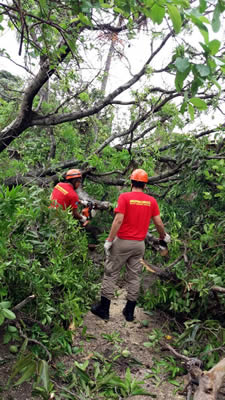 Os bombeiros alertam para que os proprietários que possuam árvores em sua residência que sempre verifiquem o estado dos vegetal, não deixando pra tomar providências apenas quando houver chuvas e fortes ventos, para evitar danos patrimoniais e humanos. Caso verifique que árvore necessite de corte deverá ser encaminhado solicitação para Secretaria de Meio Ambiente do município para que os profissionais avaliem e dêem o parecer do estado da arvore. O corpo de bombeiros militar somente realiza o corte quando há o risco eminente de queda, ou seja, que pode cair a qualquer momento ou quando já caiu prejudicando o trânsito ou causando transtorno e acessibilidade a residência.