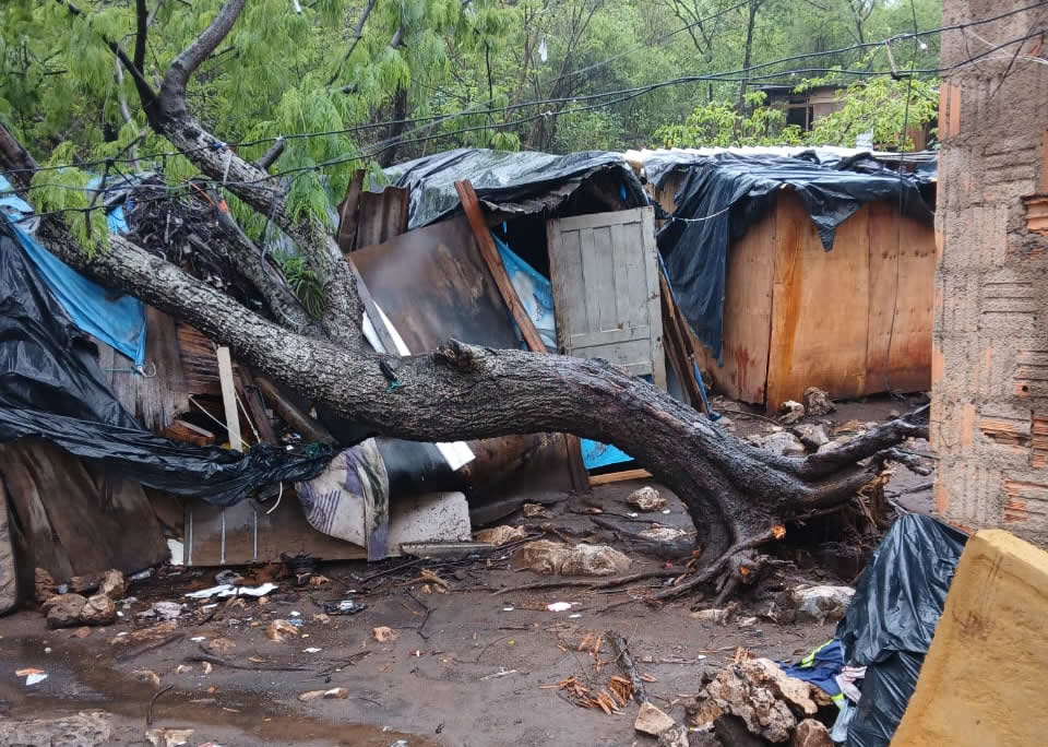 Uma árvore de grande porte caiu sobre uma residência localizada na rua João. B. Mota, em decorrência da forte chuva acompanhada de ventos intensos que atingiram a cidade. O impacto provocou sérios danos à estrutura do imóvel, com a destruição completa do telhado de zinco, vigas, caibros e paredes de madeira. Além dos prejuízos estruturais, diversos bens domésticos foram comprometidos, como tanquinho, camas, cadeiras e roupas de cama, mesa e banho.