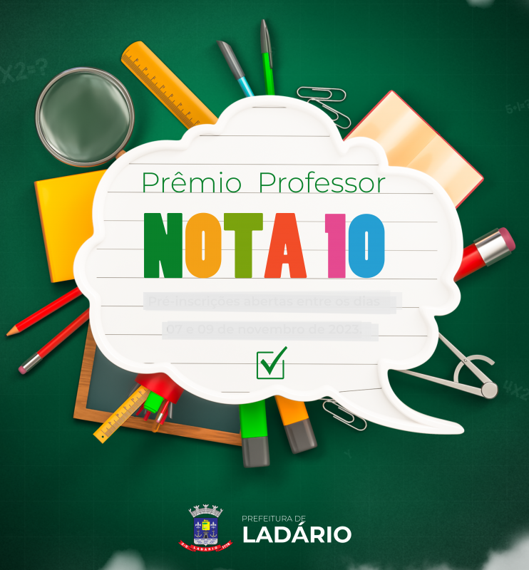 O Prêmio Professor NOTA 10 é de realização da Prefeiura de Ladário, promovido pela Secretaria Municipal de Educação, e tem a finalidade de reconhecer e dar publicidade ao trabalho desenvolvido por prosissionaisda educação da Rede Municipal de Ensino – REME, que por meio da pesquisa, elaboração de atividades e experimentação de novas metodologias, buscam melhorar o aprendizado dos alunos da educação infantil, ensino fundamental I e II, e educação inclusiva.