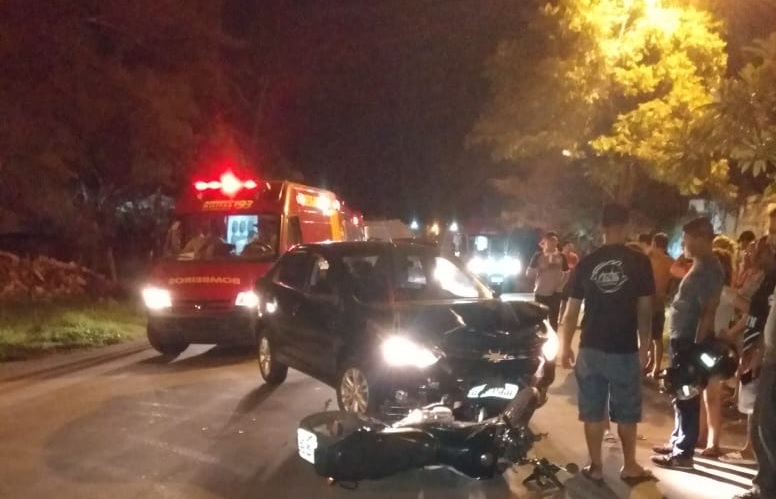 Uma colisão entre e carro e moto por volta das 19h deste domingo (26) deixou duas pessoas feridas no cruzamento das Ruas Marcílio Dias e Dom Pedro II, no centro de Ladário. O condutor da motocicleta teve fratura na perna esquerda e escoriações diversas pelo corpo. A passageira teve escoriações nos braços , pernas e reclamava de fortes dores no tórax. Após o atendimento emergencial, as vitimas, ambas de 27 anos, foram removidas ao pronto-socorro municipal de Corumbá. O homem de 45 anos que dirigia o carro envolvido no acidente não apresentava lesões.
