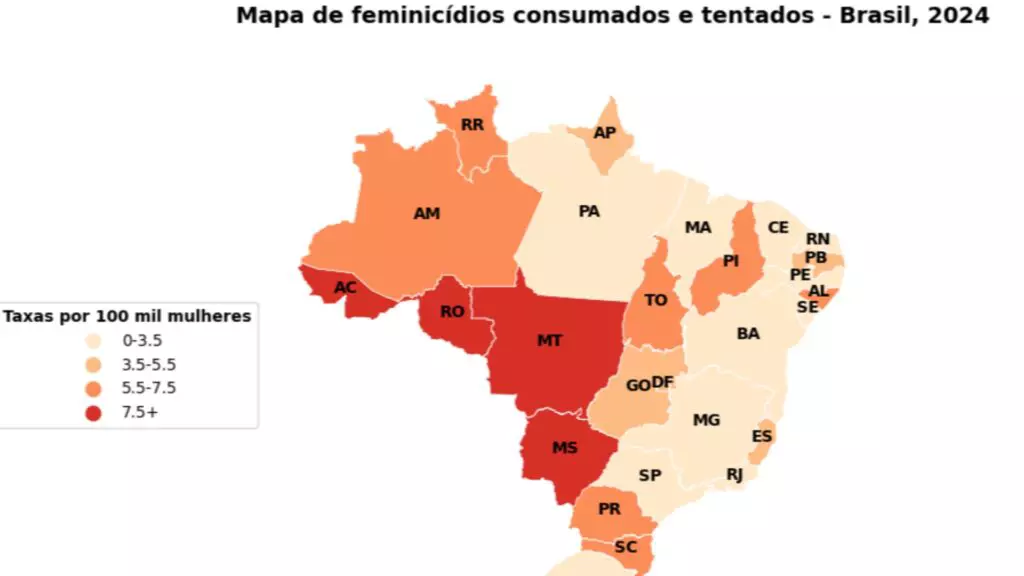 Conforme os dados, em 2024 foram 1.859 mulheres vítimas de feminicídio, sendo 2.286 mulheres vítimas de tentativa de feminicídio. Ainda conforme o estudo, o domingo é o dia da semana em que feminicidas mais cometem o crime, logo depois vem o sábado.