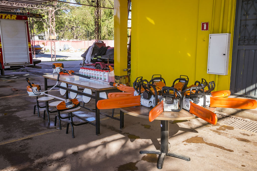 A lista dos materiais entregues para uso dos militares inclui: cinco motosserras de pequeno porte, três de porte médio, uma motosserra grande, uma roçadeira para a confecção de aceiros e uma motopoda com alcance de até cinco metros, permitindo cortes em altura sem necessidade de escalada.