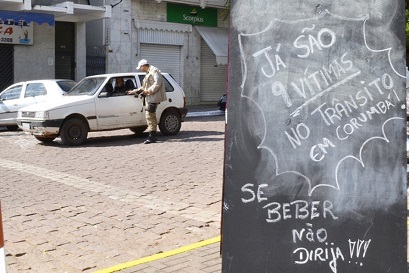 Agentes da Agência Municipal de Trânsito e Transporte (Agetrat) promoveram blitz educativa no cruzamento das ruas Frei Mariano e 13 de Junho, área central de Corumbá, no final da manhã desta segunda-feira, 18 de junho. A ação alertou para as consequências do álcool no trânsito.