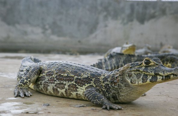 As matrizes são coletadas na natureza, por meio de um sistema de manejo em áreas monitoradas. O ciclo de produção no sistema de recria e engorda é de dois anos. Mas a partir de 18 meses, já há animais no tamanho de abate, em torno de 1 metro e 10 centímetros, 1 metro e 20 centímetros e cerca de oito quilos. Passado o período de recria e engorda, os animais entram na fase de encaminhamento no frigorífico. Lá vão para abate; processar a carne; separação da pele [couro] que vai para o curtume – também a ser instalado na própria planta – para processamento.