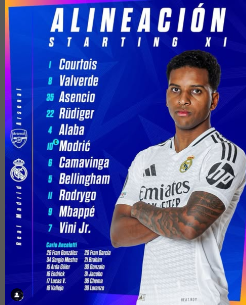 Reservas: Fran González, Mestre, Lucas Vázquez, Lorenzo Aguado, Vallejo, Jacobo Ramón, Fran García, Chema Andrés, Güler, Brahim Díaz, Endrick e Gonzalo García