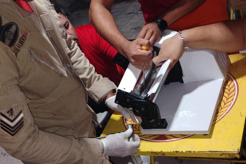 Já às 8h da manhã, os militares atenderam a um homem de 24 anos que chegou à unidade com os dedos presos em um rolo elétrico para massa. O acidente ocorreu enquanto ele preparava pastéis durante um evento religioso. Identificado como A.M.P., o rapaz estava consciente, orientado e andando, apesar da gravidade da situação.