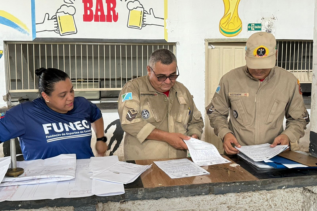 Realizada no sábado, dia 18, pelo 3º Grupamento de Bombeiros Militar (3° GBM), a vistoria do funcionamento referente ao sistema de segurança contra incêndio, pânico e outros riscos da praça esportiva foi acompanhada pela diretora-presidente da Funec, Michele Ferri.