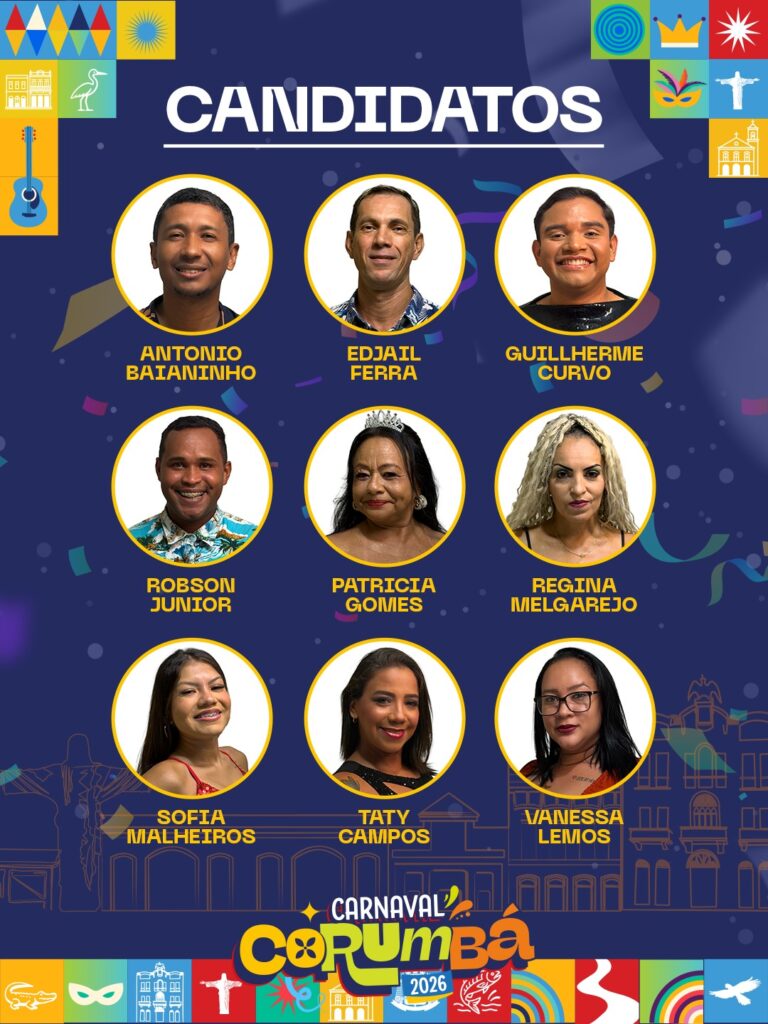 A escolha e a coroação da Corte de Momo ocorrem nesta sexta-feira, 23 de janeiro, no Jardim da Independência, logo após o lançamento oficial da programação do Carnaval de Corumbá 2026. O concurso vai definir o Rei Momo, a Rainha do Carnaval e duas princesas da festa.
