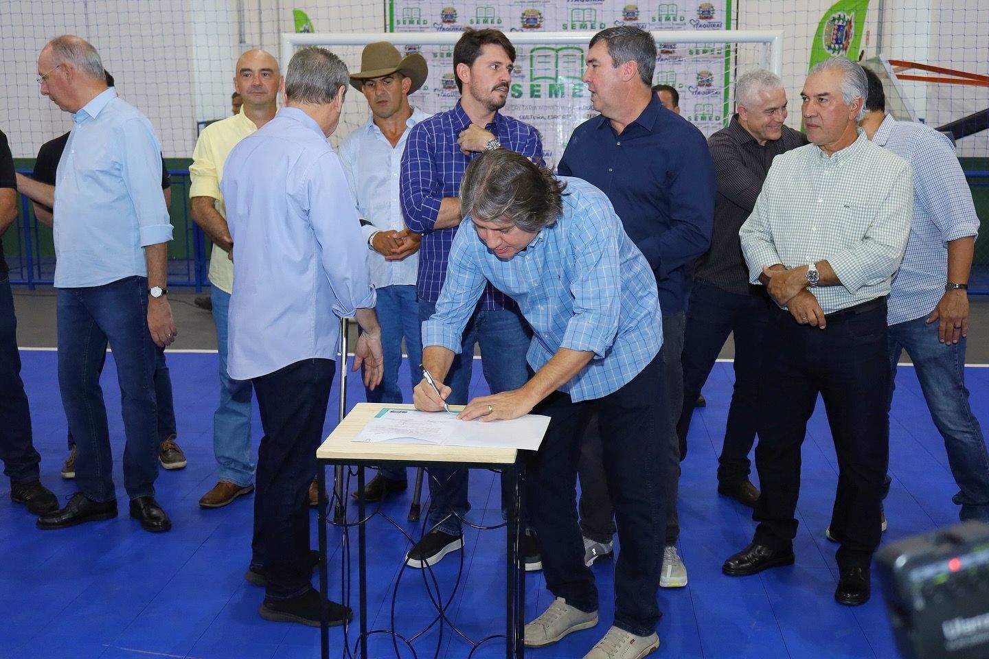 Durante sua visita a Itaquiraí, o deputado participou da entrega do Ginásio Poliesportivo e da pavimentação da MS-488, além de assinar convênios para novos investimentos.