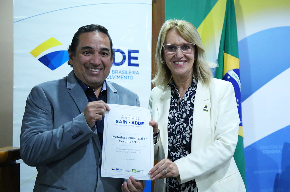 O prefeito Marcelo Iunes recebeu nessa terça-feira, 07 de junho, o Prêmio SAIN-ABDE, oferecido pela Secretaria de Assuntos Econômicos Internacionais (SAIN), do Ministério da Economia, e pela Associação Brasileira de Desenvolvimento (ABDE). Com o Programa de Desenvolvimento Integrado (PDI), Corumbá conquistou a segunda colocação na categoria Melhores Práticas em Captação Internacional de Governos Municipais.