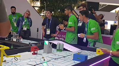 Na arena de missões, que era composta por três mesas, duas equipes se enfrentaram, cada uma usando inicialmente uma mesa lateral. O desafio consistia em duas etapas, totalizando quatro minutos. Na primeira, de dois minutos, os robôs eram guiados de forma autônoma. Na segunda fase, na mesa central, foram controlados pelos estudantes por meio de controle remoto, joystick ou smartphone com bluetooth.