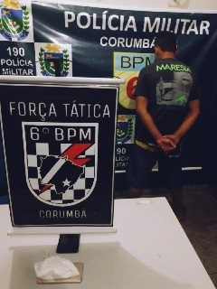 Durante revista, os policiais encontraram em meio às partes íntimas uma sacola plástica contendo cerca de 100 gramas de cocaína. Ele confessou aos militares que venderia a droga em uma “boca de fumo” da região pelo valor de R$ 1.500. Foi então detido e conduzido à 1ª Delegacia de Polícia Civil juntamente com o entorpecente.