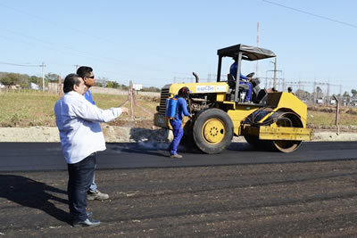 No local, o prefeito acompanhou os serviços de implantação da base para a aplicação de CBUQ (concreto betumado) e as ações para a implantação de galerias de águas pluviais em três vias paralelas à principal avenida do bairro. Em alguns casos, as pedras são retiradas com detonação de explosivos.