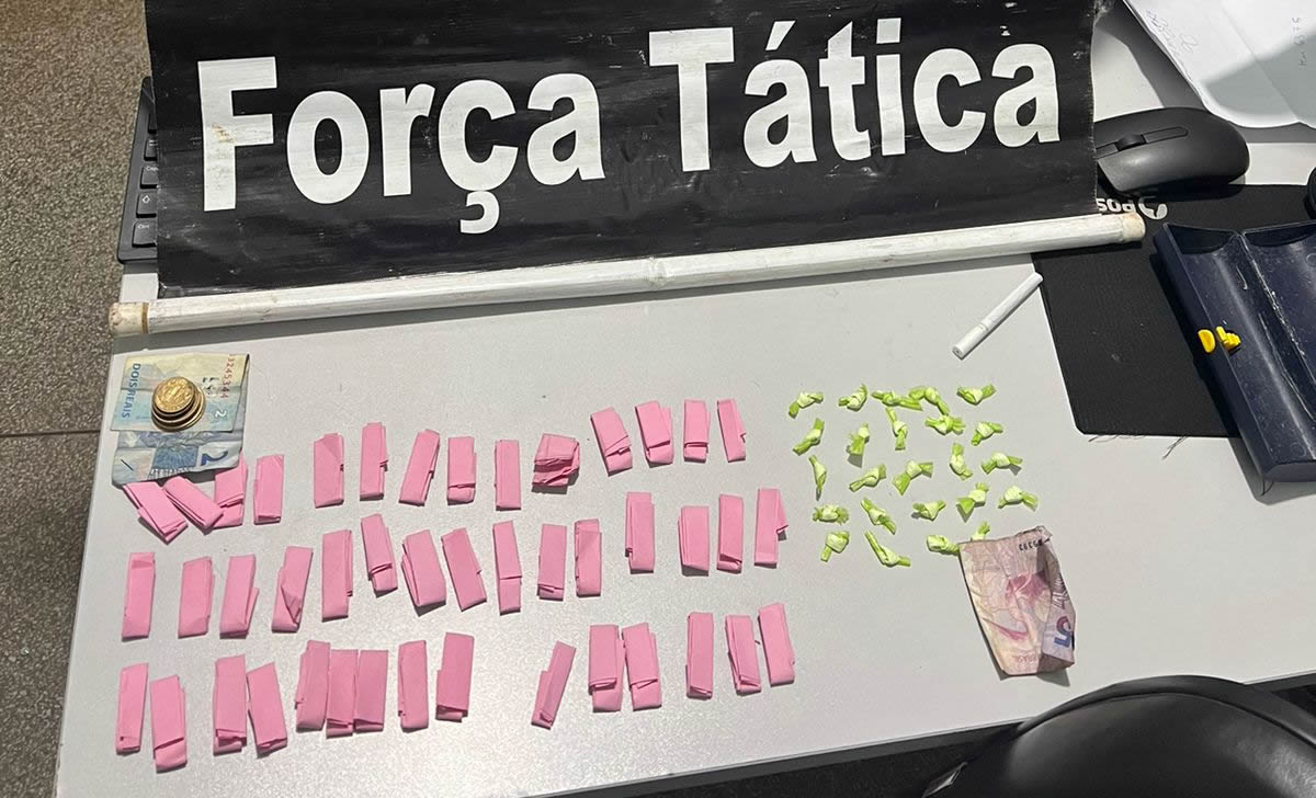 Os homens de 32 e 34 anos, foram localizados pela guarnição a duas quadras do local do furto. Durante a abordagem, um dos suspeitos largou um rolo de fio e o outro retirou um invólucro branco da cintura e o jogou sob um veículo estacionado. Com o indivíduo de 34 anos, os policiais encontraram uma pedra de pasta base, pesando aproximadamente 3 gramas.