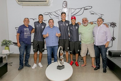 As jovens promessas do futebol pantaneiro, o técnico Zé Humberto, o tesoureiro do Carijó da Avenida, Luiz Bosco Delgado, e o diretor-executivo do clube, Salim Ribeiro, foram recebidos pelo prefeito Marcelo Iunes na tarde dessa terça-feira, 23 de abril. O prefeito desejou sorte aos jogadores e também anunciou a ampliação do Geração Olímpica.