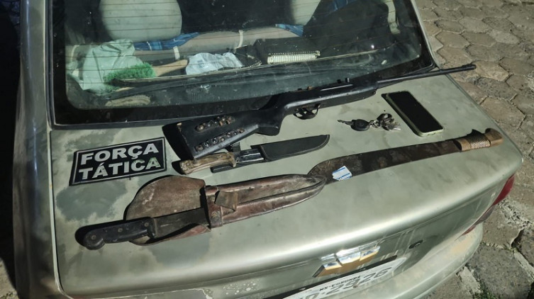 O autor começou a segui-la, com um automóvel, quando voltou para a cidade acompanhada da irmã. A vítima logo fez uma chamada de emergência para o 190 e a guarnição da Força Tática da Polícia Militar abordou o acusado. Os policiais revistaram o veículo do agressor e encontraram uma espingarda calibre .22, carregada com uma munição e outra munição fora da arma de fogo, além de facas e a quantia de R$ 651,00 no banco do passageiro.