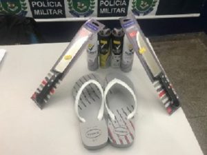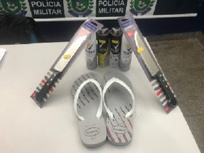 A equipe de Força Tática da PM foi acionada até a rua Ciriaco de Toledo, no Conjunto Guanã II, para averiguar uma denúncia de furto por volta das 10 horas desta terça-feira (23). Segundo informações, um indivíduo teria adentrado um estabelecimento e subtraído quatro frascos de desodorantes, duas facas de marca Tramontina e um par de chinelo, e fugido em um ônibus .