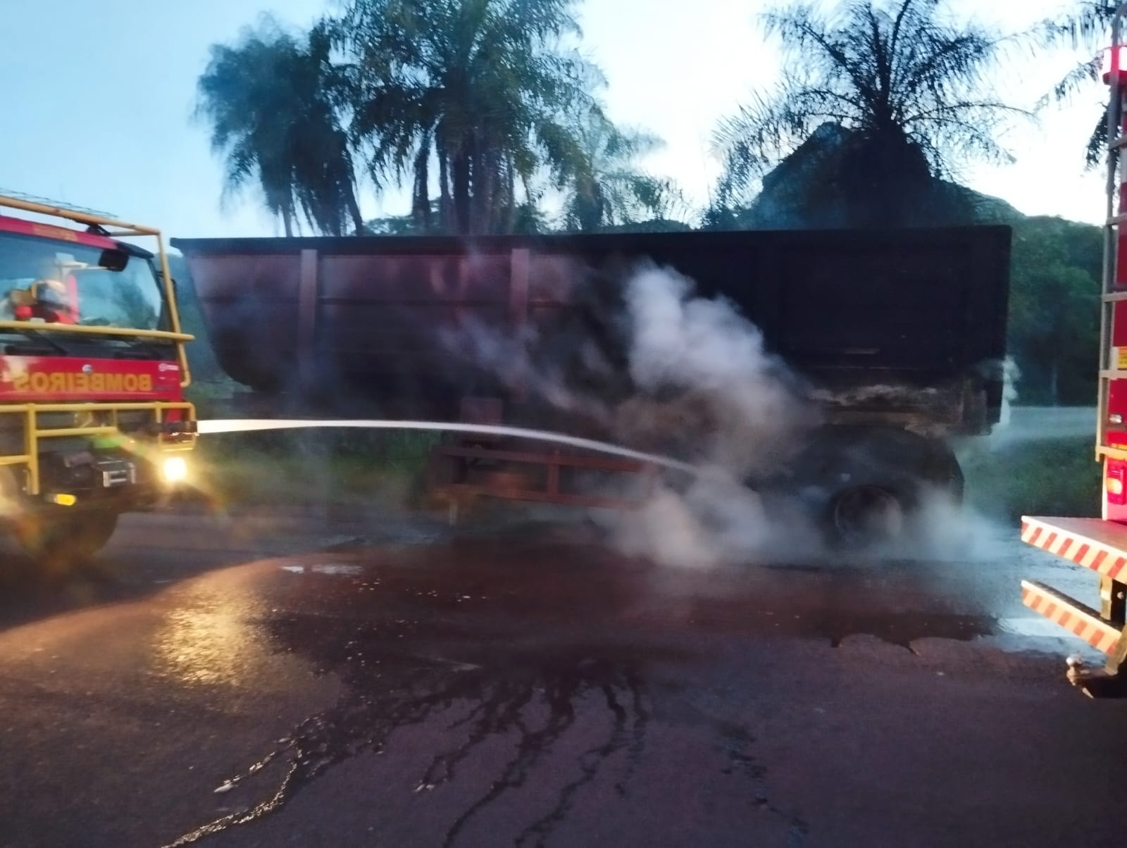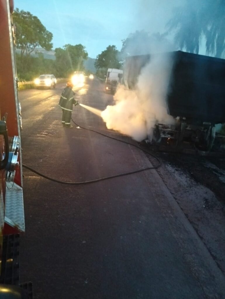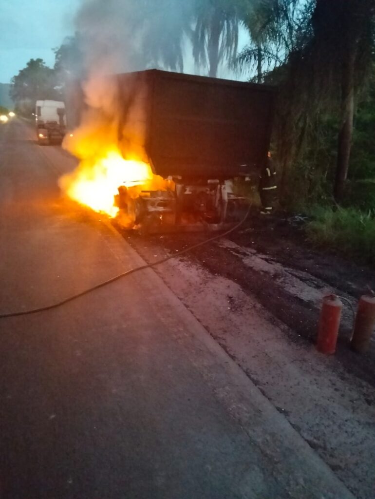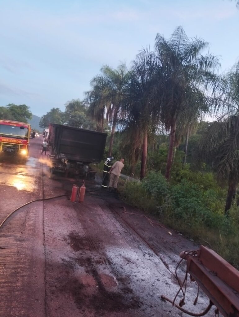 Na madrugada desta terça-feira (27), por volta das 04h20, uma carreta bitrem carregada com minério pegou fogo na BR-262, região de Maria Coelho, zona rural de Corumbá.