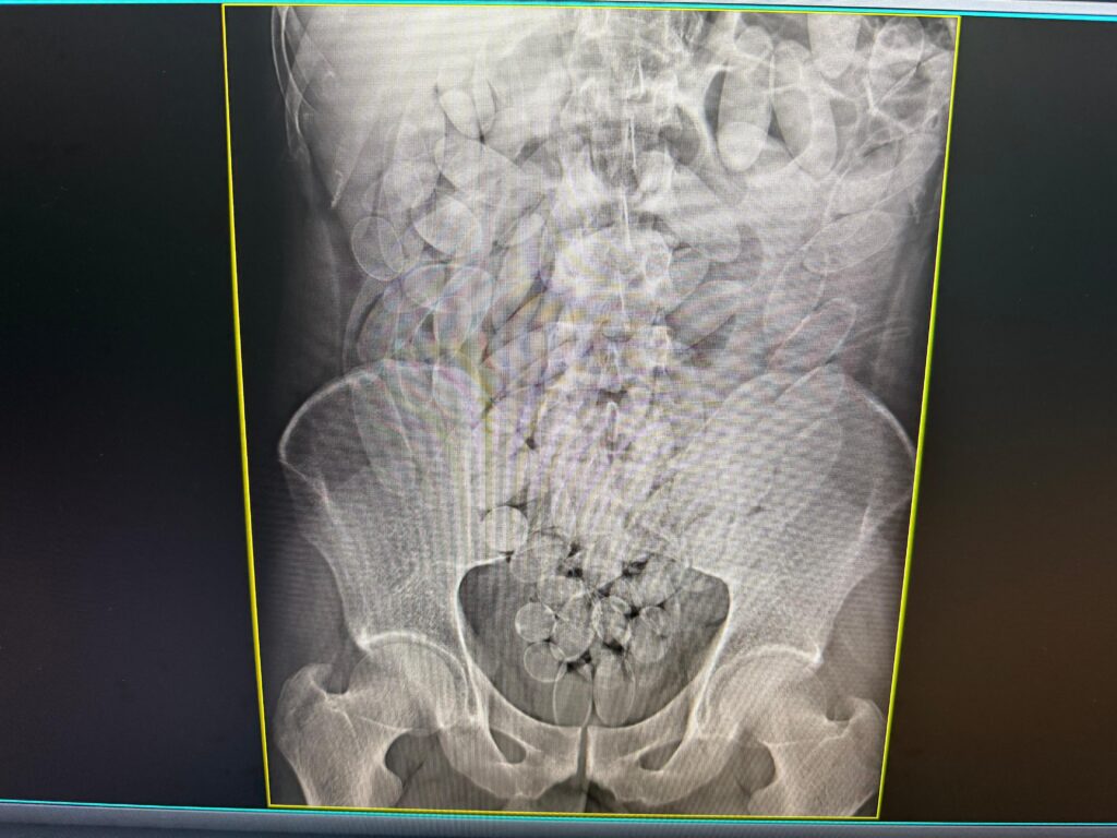 Os raios X confirmaram que o grupo havia ingerido cápsulas contendo pasta base de cocaína. Ao todo, 645 cápsulas foram retiradas por meio de procedimento médico. Após o atendimento, os envolvidos foram encaminhados à Polícia Federal, que conduz a investigação.