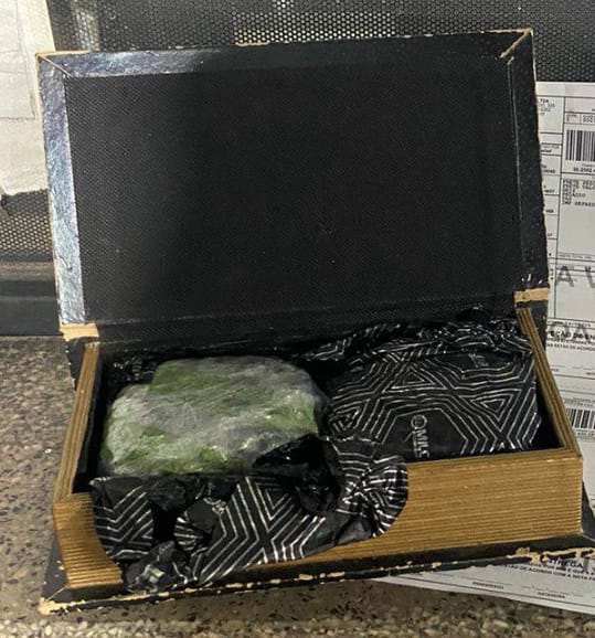 As tropas realizaram revista minuciosa e, após suspeita fundada pela ação de cão farejador, inspecionaram uma caixa que havia sido despachada como encomenda. No interior da encomenda, encontraram livros, um deles era falso e continha dois tablets de material semelhante à maconha, com o peso aproximado de 0,220kg.