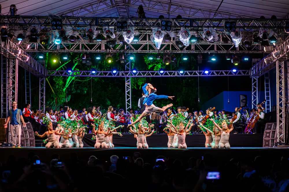 ‘O Fazedor de Amanhecer’ propôs uma reflexão sobre a necessidade de mudança de atitudes e a importância de recomeçar. O espetáculo contou com a participação especial do ator Arce Corrêa, dos músicos Márcio de Camillo e Celina Charlier, além dos corais ‘Fundación Coral y Orquestral ArteCanto’ e ‘Instituto Superior de Formación Artística Bellas Artes’, de Santa Cruz/BO, com 35 integrantes.