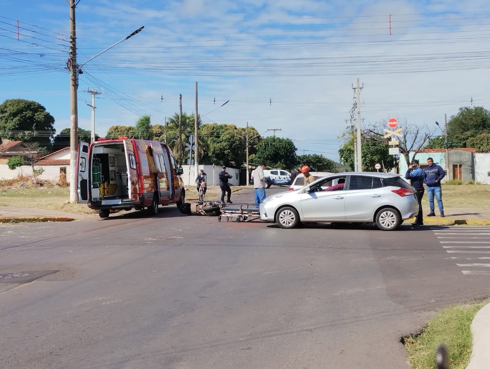 Por volta das 9h40 desta terça-feira (1), equipes de resgate e salvamento foram acionadas para uma colisão entre carro e moto na rua Joaquim Venceslau de Barros com Major Gama, na região central. No local, o motociclista W.N.S., de 62 anos, foi encontrado consciente e orientado, porém com suspeita de fratura na perna direita e fortes dores na região das costelas do lado direito. Após os primeiros socorros, ele foi encaminhado ao pronto-socorro. O motorista do carro não sofreu ferimentos.
