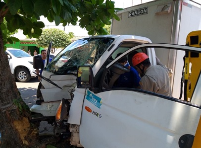 O homem de 31 anos estava consciente e apresentava fortes dores na região do tórax e pescoço, suspeita de fratura na mão direita e fratura no tornozelo direito. A vítima ficou retida entre as ferragens do veículo e foi necessário utilizar ferramenta de desencarceramento. Após o atendimento emergencial a vítima foi removida ao pronto-socorro municipal. O condutor relatou que a direção travou e não conseguir frear o veículo.