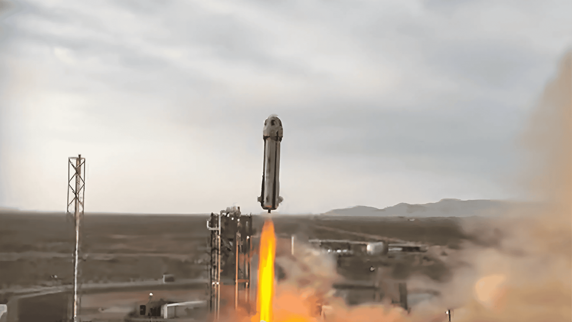 O foguete decolou por volta das 10h31 (Horário de Brasília), no Texas, e retornou em pouco mais de dez minutos. A cápsula com a tripulação desacoplou do New Shepard e chegou a 100 km de altitude acima do nível do mar. Nesta distância, encontra-se a linha Kárman, considerada a fronteira do espaço.