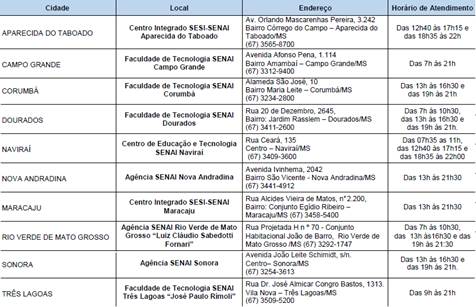 Confira abaixo os endereços e telefones das unidades do Senai no Estado: