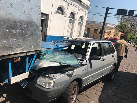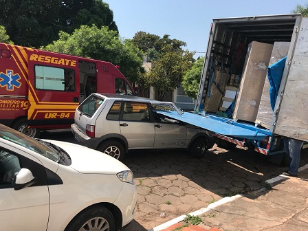 Por volta de 09h57 de ontem (24) as viaturas de resgate e salvamento se deslocaram até a rua Ladário esquina com 13 de Junho, na área central onde um veiculo colidiu na traseira de um caminhão. Um homem de 25 anos, condutor do veículo, foi socorrido com um corte e hematomas no braço direito e reclamava de dores no ombro direito. O condutor do veiculo alegou que a direção do veículo travou vindo a colidir com a rampa de acesso do caminhão que descarregava produtos. Por sorte, não havia ninguém no banco de passageiro do Fiat Uno e nenhuma pessoa realizava serviço no momento da colisão.