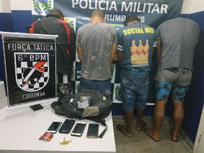 A guarnição de Força Tática da Polícia Militar foi acionada para atender uma ocorrência de roubo e prendeu quatro indivíduos na madrugada desta terça-feira, 14 de agosto, em Corumbá.