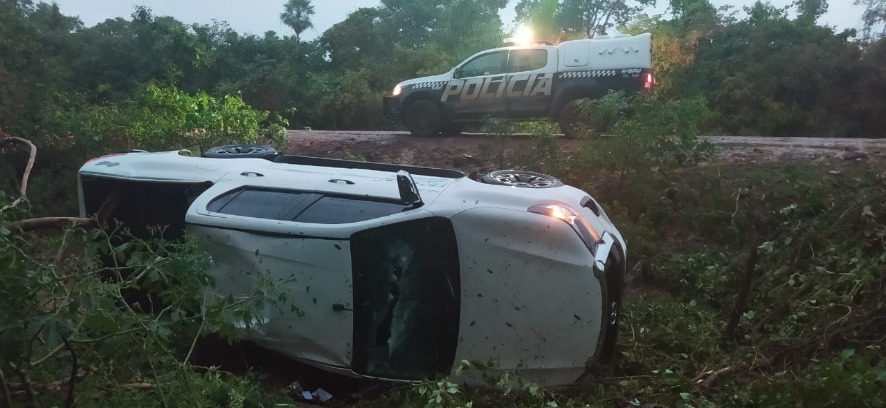 Na última quinta-feira (14) a guarnição de Patrulha Rural em policiamento ostensivo na área da Nhecolândia, nas proximidades da Fazenda Firme, encontrou uma caminhonete tombada.