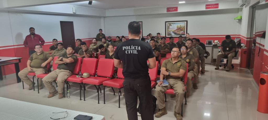 A Polícia Civil do Estado do Mato Grosso do Sul, por intermédio do Delegado Titular da Delegacia de Polícia de Ladário, Guilherme Oliveira Pena; Delegado Titular da 1DP de Corumbá, Elton Alves de Sá Júnior; e Investigador de Polícia da Delegacia de Ladário, Marcos Sérgio Tiaen, realizou nos dias 19, 20 e 21 de maio visita institucional e palestra aos policiais do DIPROVE (Dirección Departamental de Prevención e Investigación de Robo de Vehículos), a convite do Coronel Walter Sossa Rivera, na cidade de Santa Cruz de La Sierra – Bolívia.