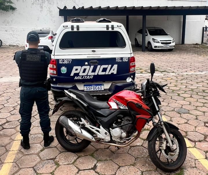 Durante as diligências, a guarnição recebeu denúncia anônima indicando o possível local onde estaria a motocicleta furtada. A equipe deslocou-se até a região próxima a um ponto conhecido como “Boca do Chacal”, onde foi possível localizar o veículo, confirmando tratar-se da motocicleta produto do furto.