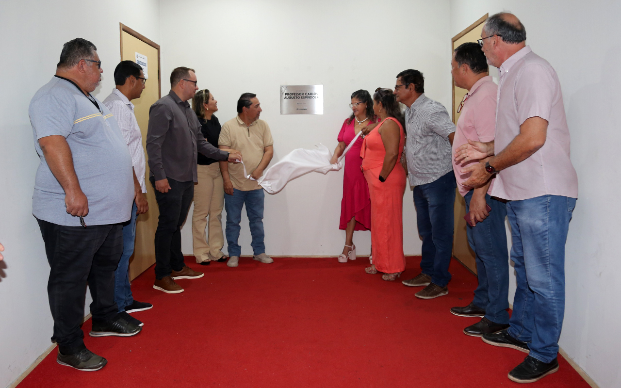 Com 162 lugares, o auditório superior do Centro de Convenções agora se chama “Professor Carlos Augusto Espíndola”. A placa com a denominação foi descerrada na manhã desta segunda-feira, 03 junho, pelo prefeito Marcelo Iunes. A secretária Municipal de Assistência Social e Cidadania, Amanda Balancieri Iunes, participou da solenidade.