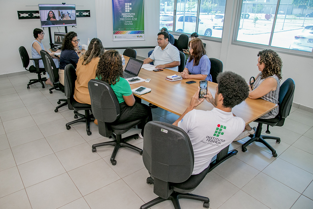 A vídeoconferência contou com participação da diretora de Ensino, Pesquisa e Extensão do Campus Corumbá (IFMS), Samara Melo Valcacer; Celly Nataly Cavalcante de Souza (diretora de Administração); Mariane Alves de Andrade e Silva (coordenador de Extensão e Relações Institucionais); Alfranio Pedroso Soares (coordenador dos Cursos do Eixo Tecnológico em Informação e Comunicação) e Luciana Massia (chefe de gabinete substituta IFMS).