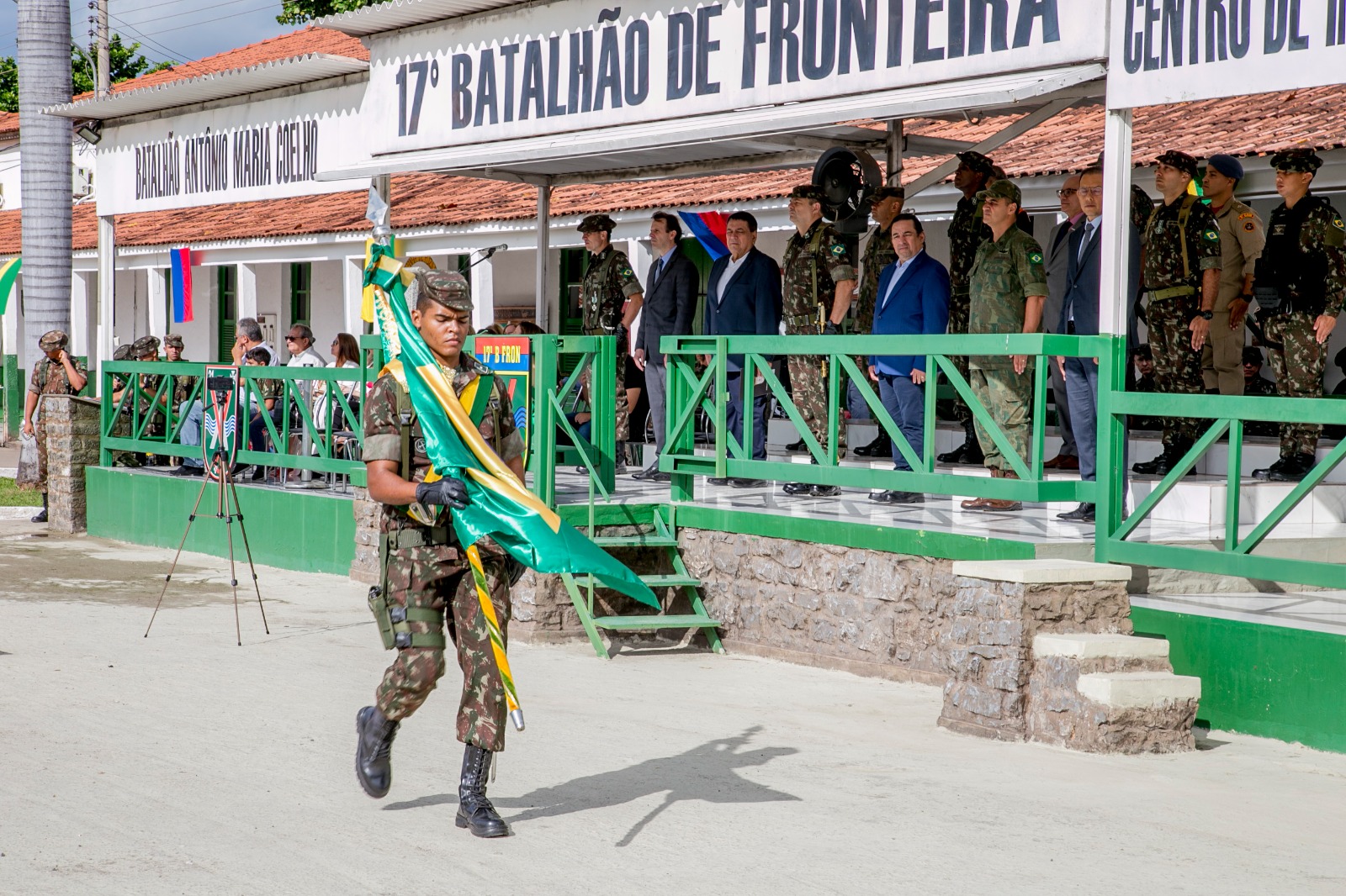 O prefeito Marcelo Iunes participou da cerimônia do Dia do Exército nesta quarta-feira, 19 de abril. A solenidade, no quartel do 17º Batalhão de Fronteira, celebrou os 375 anos da instituição militar. A data faz referência à Batalha de Guararapes (no ano de 1648), quando foram constituídas as raízes da mais antiga das três forças armadas brasileiras para defesa e reconquista do território nacional, ocupado pelos holandeses na região Nordeste do Brasil.