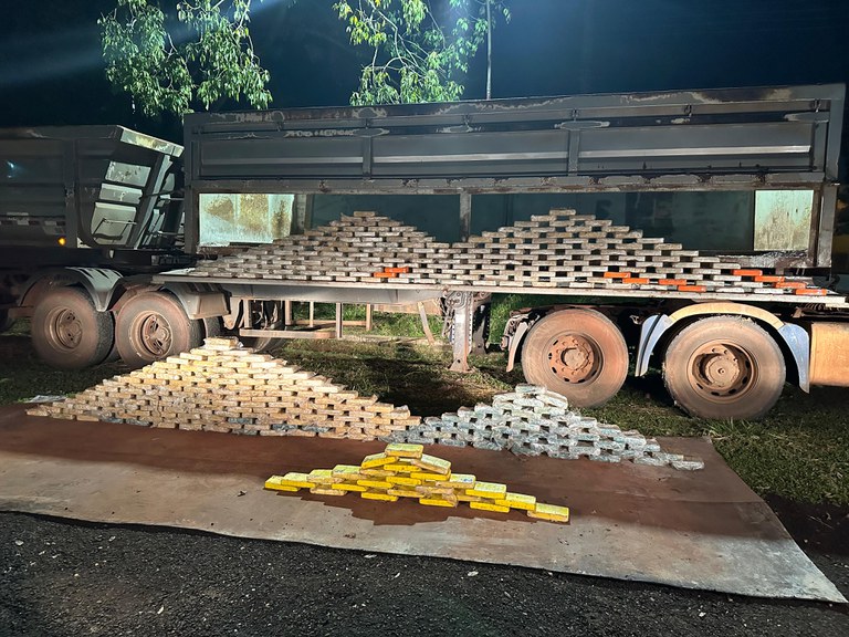 Após acesso ao esconderijo, os policiais encontraram 370 quilos de pasta base e 25 quilos de cloridrato de cocaína. Questionado, o condutor disse ter entregue os reboques a um desconhecido e depois recebeu os veículos já com a droga oculta.