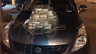 Durante fiscalização na Unidade Operacional da PRF, a equipe abordou um veículo Suzuki/Swift Dzire com placas bolivianas, conduzido por um homem de 44 anos, tendo como passageiro, um homem de 35.