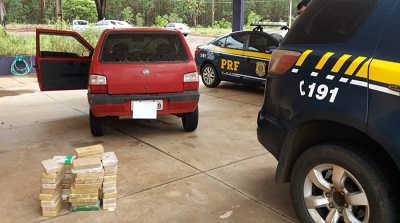 Em fiscalização de rotina na Unidade Operacional da PRF em Três Lagoas/MS, BR-262 km 23, foi abordado um Fiat/Uno Mille Fire com placas de Miranda/MS, conduzido por uma mulher de 25 anos, na companhia de um homem de 28.