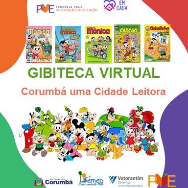 A Prefeitura de Corumbá, por meio da Secretaria Municipal de Educação, através do Programa Parceria pela Valorização da Educação (PVE) disponibiliza a GIBITECA VIRTUAL- Corumbá uma Cidade Leitora, com acervos digitais de histórias em quadrinhos.