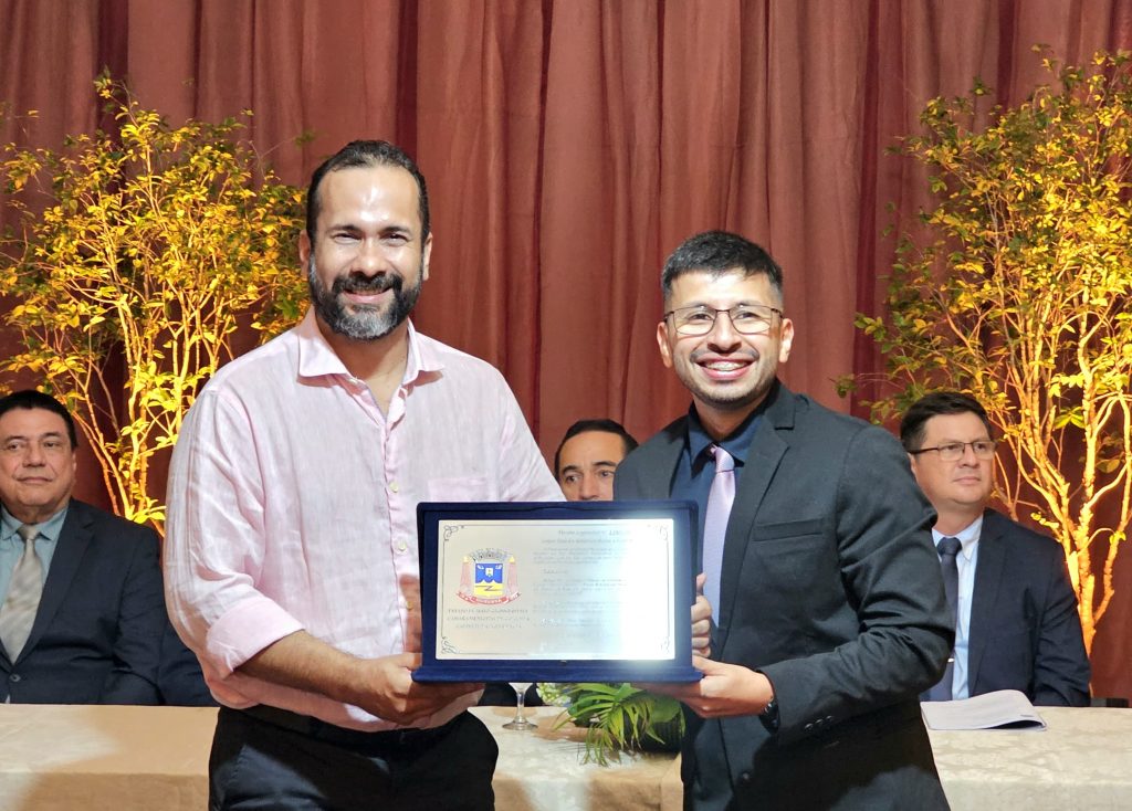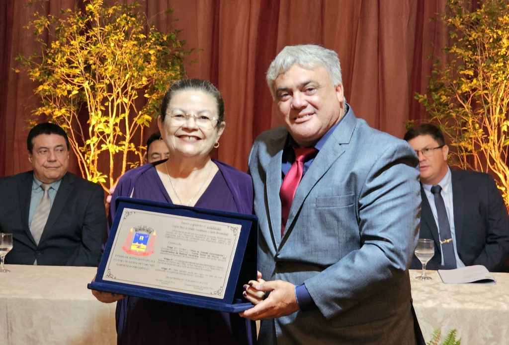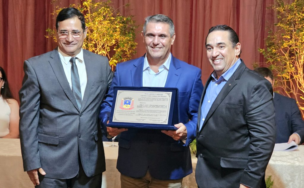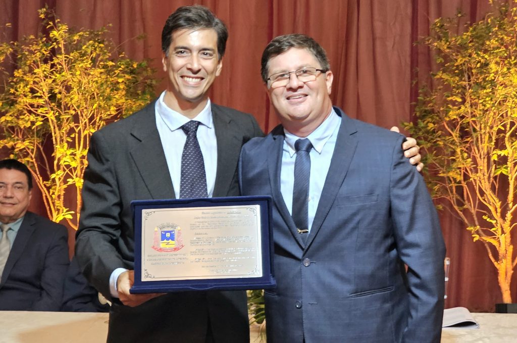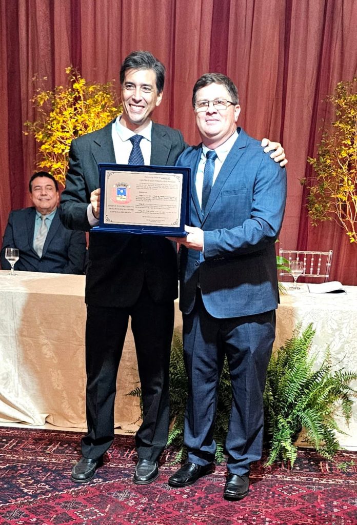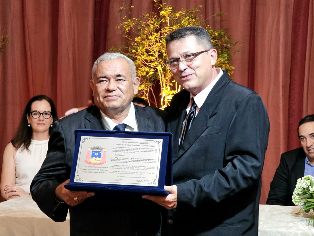 A condecoração ocorreu na noite de ontem, sexta-feira, 8 de dezembro, durante Sessão Solene no salão de eventos da Chácara da Mil, e foi comandado pelo presidente do Poder Legislativo corumbaense, Ubiratan Canhete de Campos Filho (Bira).